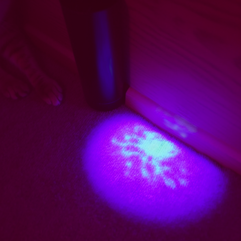 - Finding hidden Dog pee spots on carpets (Note:Only for dried urine stains in dark environments.)